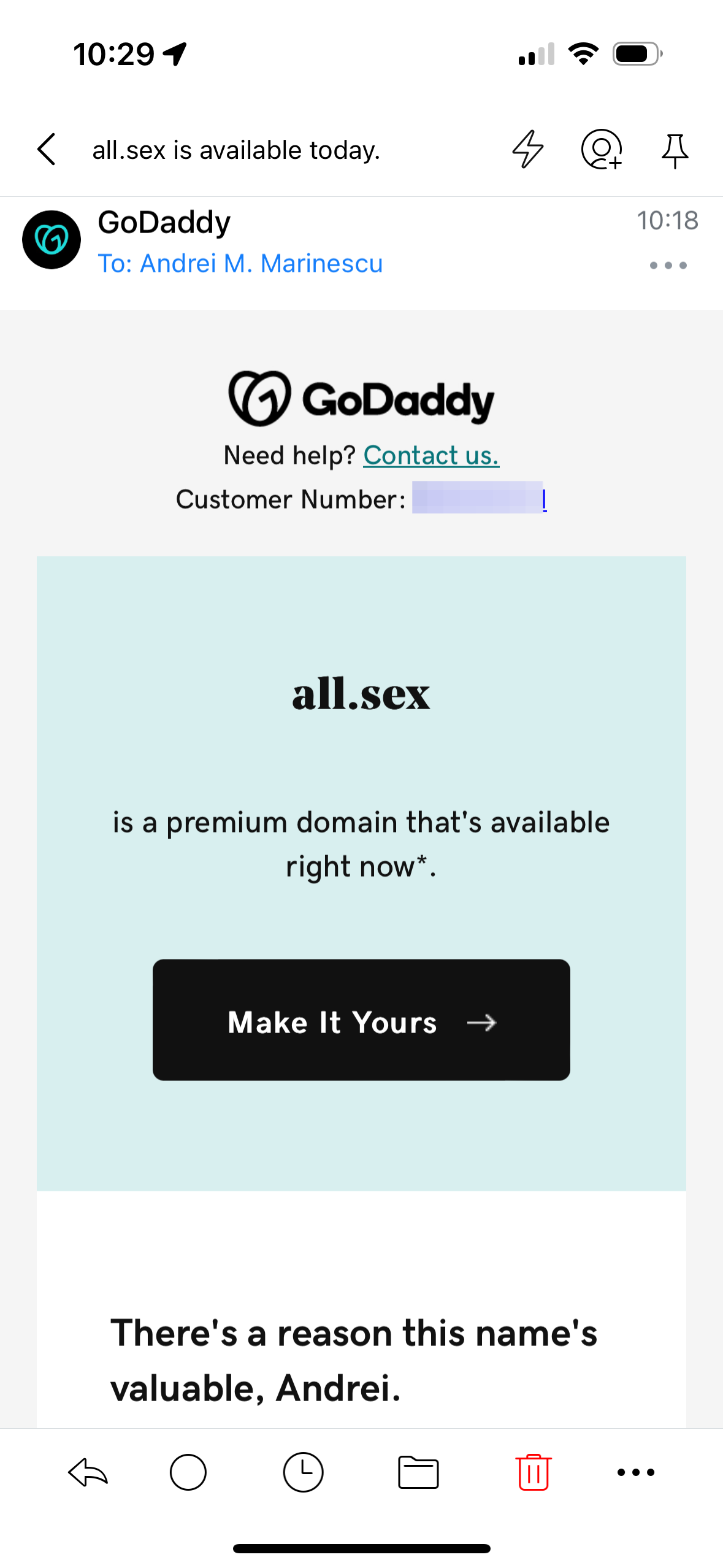 One brand that should probably review their LCM logic is GoDaddy, who recently sent out this cringe-inducing email: